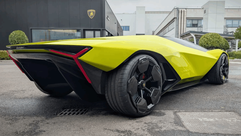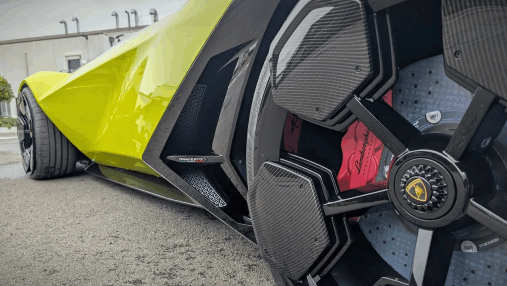 The rear of the Manifesto is an extreme taper (quite unlike the snub rear ends we’ve come to love Lamborghini supercars for) the underside of which is a sprawling venturi tunnel extending all the way under the car.